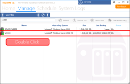 To restore from a previous VSquare Backup you need to select the backup from the desired virtual machine backup history. To do so, first of all you should open the virtual machine details by double clicking on the Datacenters Manage list.